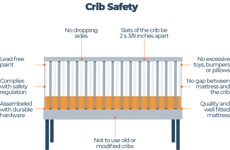 One of the American Academy of Pediatrics’ (AAP) home safety recommendations for sleep is that all babies share a room with their parents for the first 6 months, or ideally, for the first year. Since 2011, new federal guidelines were also put into place regarding crib safety that included prohibiting drop-side rails, strengthening crib slats and mattress supports, and improving hardware quality.
