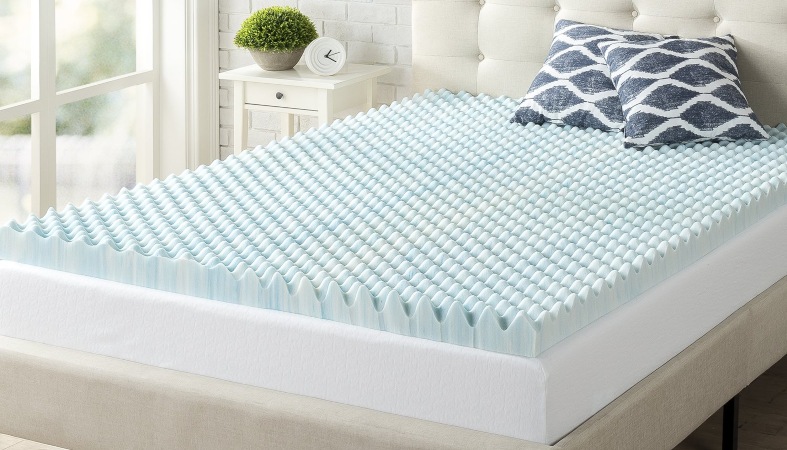 You should not have any problems finding convoluted mattress toppers both in store and online due to its affordable price and simple design. It works well to regulate temperature because of the varying heights within the surface allows airflow and can relieve pressure. For bedridden folks, it can help discourage bedsores because the skin may not be in constant contact with the material.