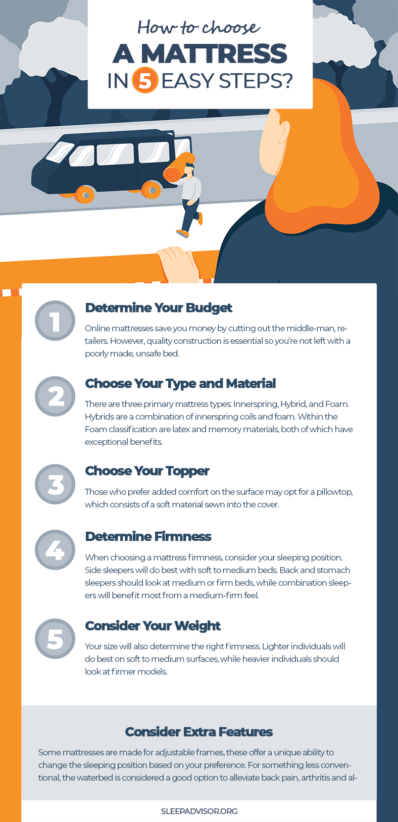 Choosing the right mattress is a huge step toward helping you sleep better. Purchasing a new bed is an individual process; What works for one person may not apply to someone else.