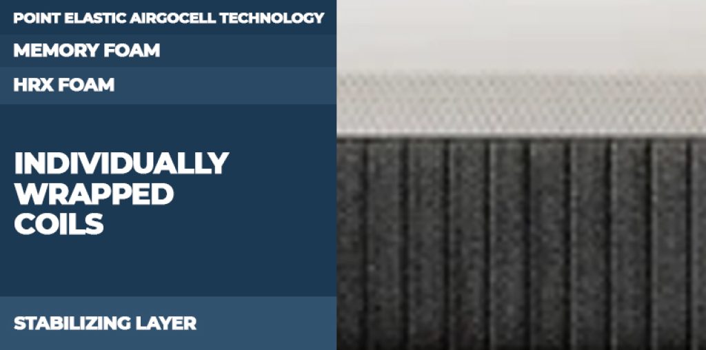 - The stabilizing layer sits beneath the coils to provide a solid foundation for the entire mattress.