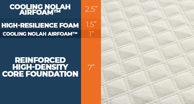 - The first comfort layer is 2.5 inches of Cooling Nolah AirFoam™. You should find yourself feeling comfortable on this proprietary foam. It lies right under the cotton cover, contouring to your body and adapting to your shape regardless of the sleeping position you prefer.