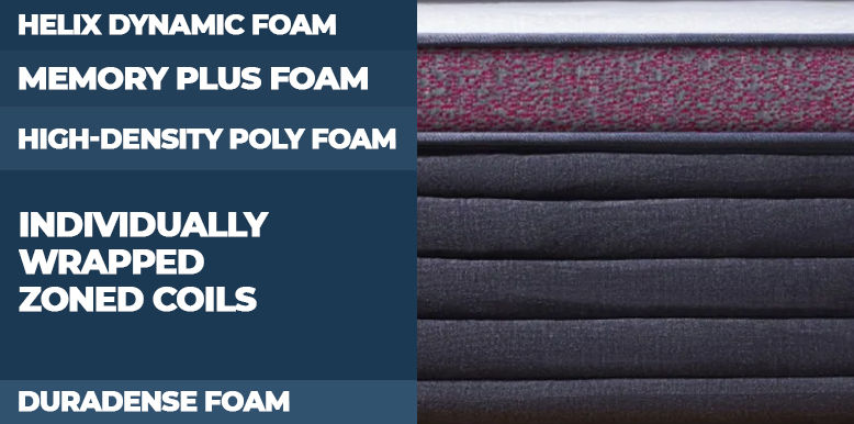 - The first comfort layer is a Helix Dynamic Foam designed to contour and cushion your body for pressure relief. This is a latex alternative that gives the surface some bounce, which we think allows easier movement on the bed.