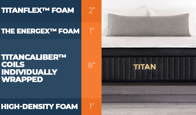 - Below the pillowtop is a layer of TitanFlex™ foam designed to relieve pressure by cushioning all the sensitive areas.