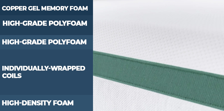 - The support layer features individually wrapped coils that ensure proper alignment, stability, and durability. This layer also has reinforced edges on two sides of the bed.