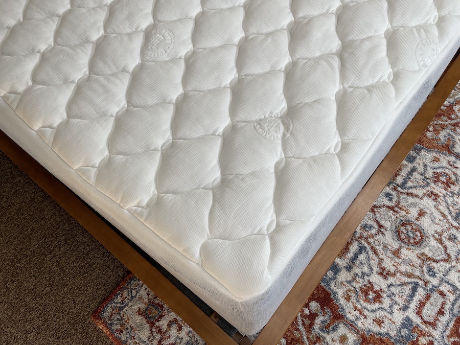 The Helix Plush mattress topper adds a thin layer of plushness and quilting to the top of a mattress. It doesn’t dramatically change the firmness or feel but does add a bit of luxurious plushness.