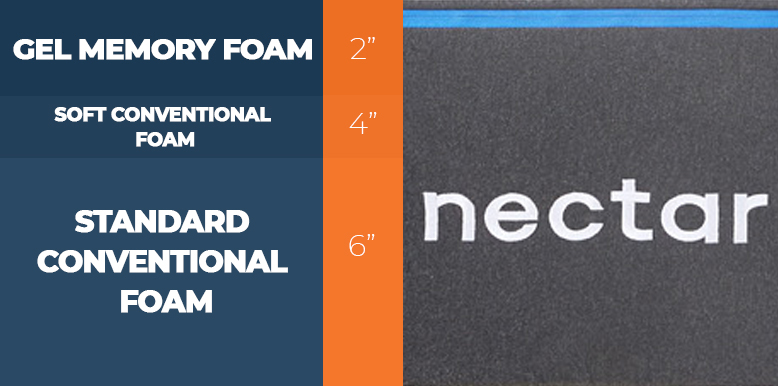 - The surface layer has 2 inches of memory foam. This layer is gel-infused to better expel heat across the surface and away from the sleeper.