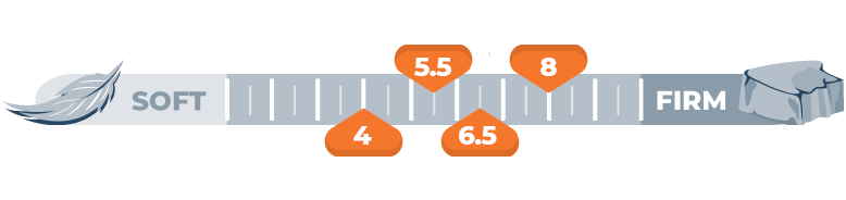 Using a scale of 1-10, we’ve determined the firmness of both mattresses, assuming 1 is soft as a cloud and 10 is firm as cement. The DreamCloud is rated 5.5, and the Saatva is rated 4, 6.5, and 8 on our scale.