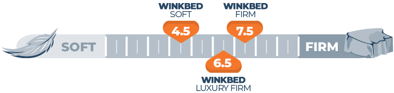 On the other hand, WinkBed’s Luxury Firm option feels like a 6.5, which is very similar to the Avocado mattress. The company rates their softer model a 4.5, which should feel medium or medium-soft, while their firmer option is scored 7.5.