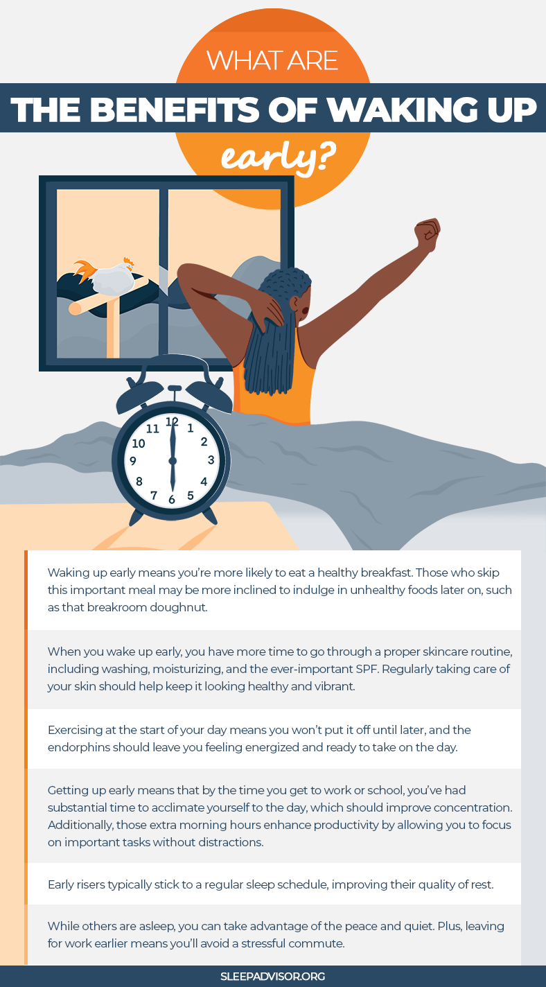 You may be familiar with the phrase “the early bird gets the worm” or the famous CEOs and world leaders who swear by awaking at 5:00 a.m. every day. Is there something to being an early riser, though? Evidence suggests that waking up early is beneficial for reasons that could improve your mental, physical, and professional self.