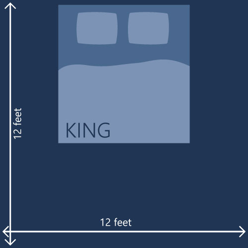 The general rule of thumb is that you need at least 2 feet on the three sides of the room. However, this is just in case you are not looking to furnish your bedroom. If you wish to include a wardrobe and other furniture as well, you would have to leave a lot more than just that. Therefore, if you have a bedroom that is smaller than 12 feet by 14 feet, you ought to consider something different than the King mattress.