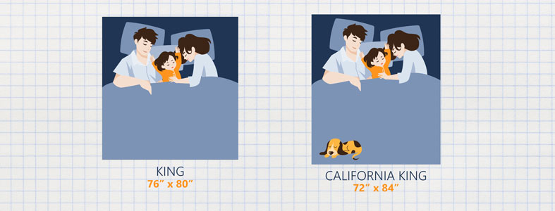 Usually, California or regular King beds are purchased by couples since the extra surface space is not as necessary for most solo sleepers. However, deciding between the two may come down to your body types and how much space you want to spread out.