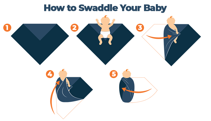 Swaddling a baby takes practice, and over time, it should become easier. As you can see in the graphic above, here are the five steps to follow when swaddling a baby11: