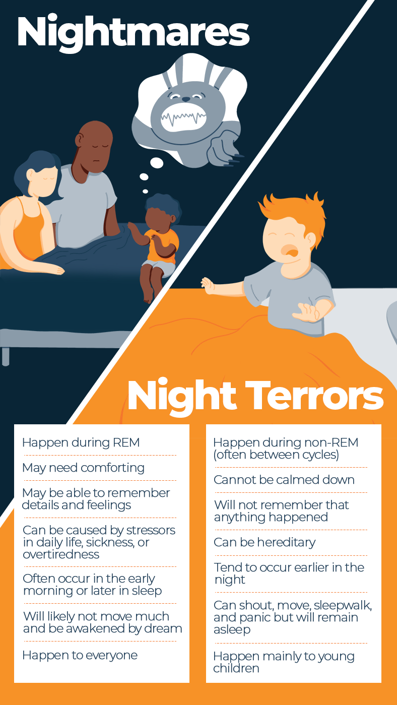 While nightmares affect everyone, night terrors are limited to about 3% of children. There’s also a genetic component to night terrors, yet nightmares occur universally.